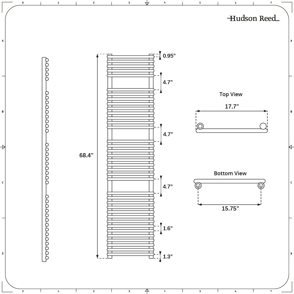 - 68 3/8” (H) x 17 3/4” (W) x 2 1/8” (D)