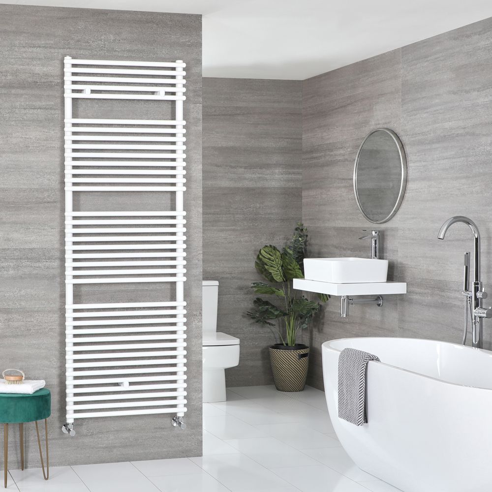 Make your bathroom décor stand out from the crowd with the Arno designer towel warmer, which benefits from an attractive white finish. Featuring a modern bar on bar design, the durable high quality steel towel warmer will perfectly heat your towels to make them warm and comforting ready for use as well as allowing you to keep them neatly hung.