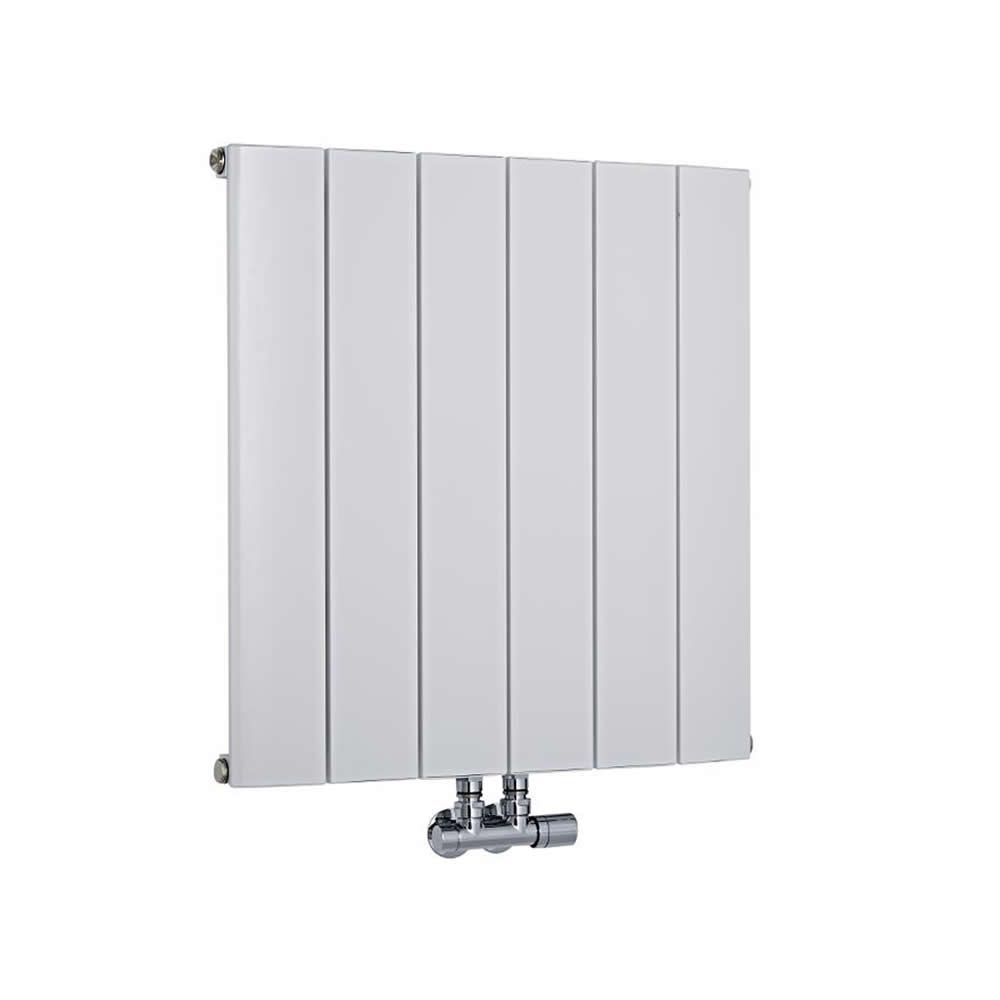 Sure to enhance any modern interior, this compact hot water radiator features a resilient white powder coated finish that complements any décor and central connection valve inlets that help to maximize wall space. Thanks to the lightweight yet durable aluminum construction, this European style radiator is quick to heat up.