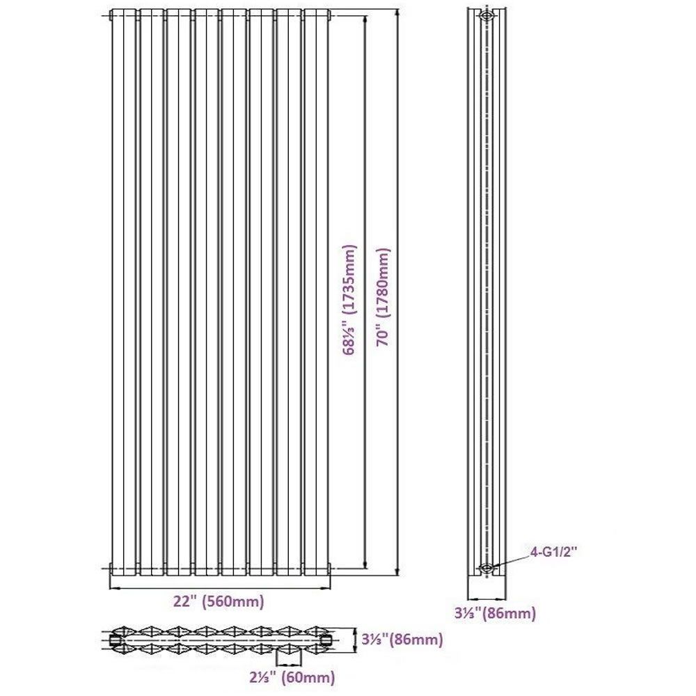 Edifice - Anthracite Vertical Double-Panel Designer Radiator - 70" x 22"