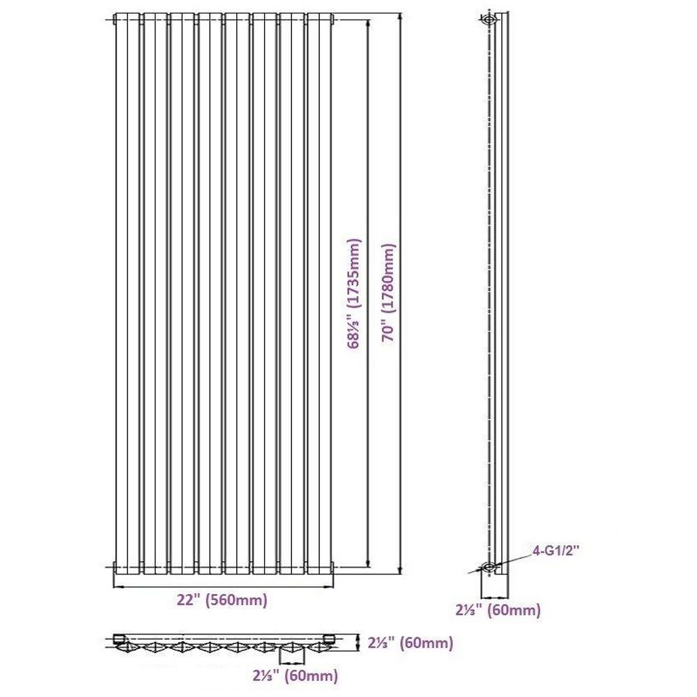 Edifice - Anthracite Vertical Single-Panel Designer Radiator - 70" x 22"