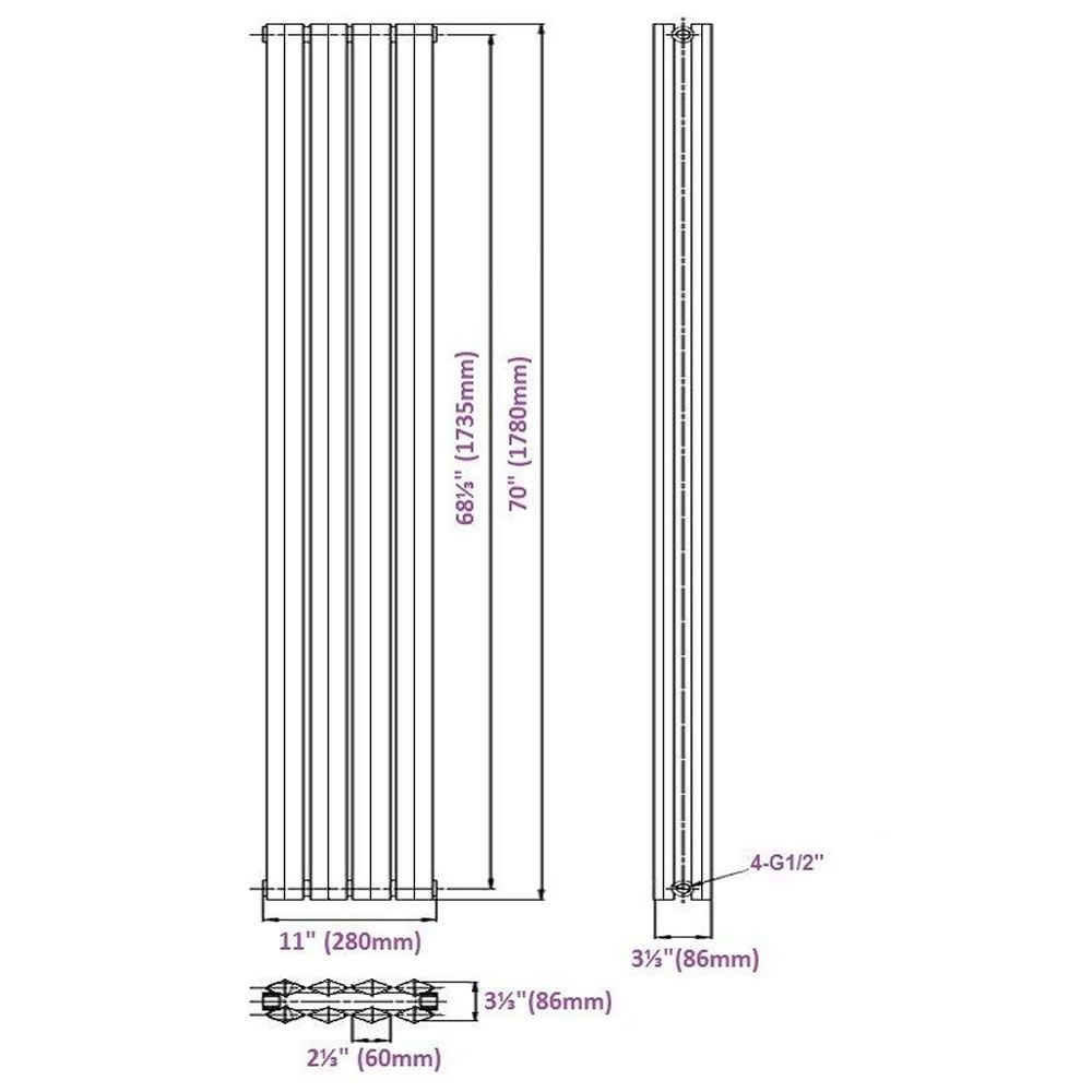 Edifice - White Vertical Double-Panel Designer Radiator - 70" x 11"