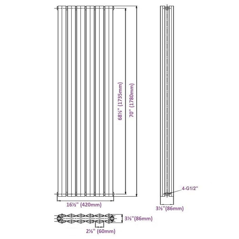 Edifice - White Vertical Double-Panel Designer Radiator - 70" x 16.5"
