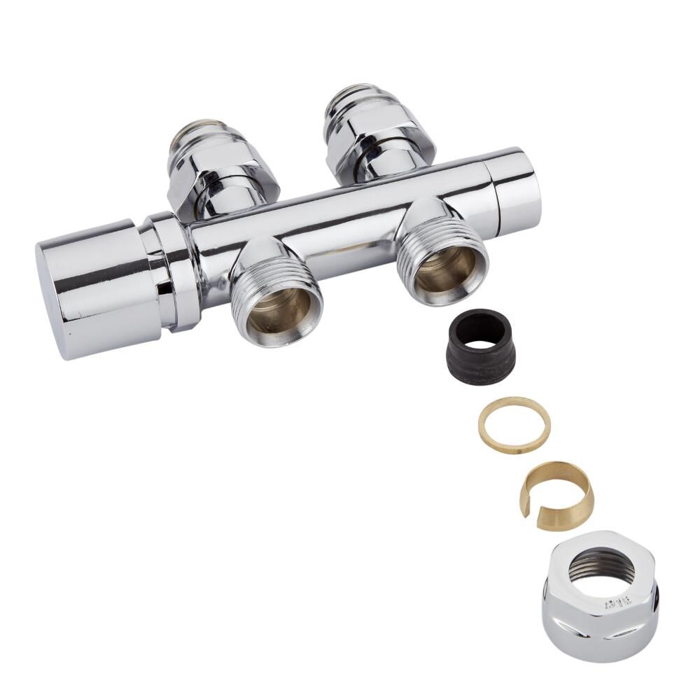 This h-block valve has been designed to be used with radiators and towel warmers with middle connection valve inlets. Made from brass for long-lasting durability, it features a modern design and a hard-wearing chrome finish that complements any décor.
