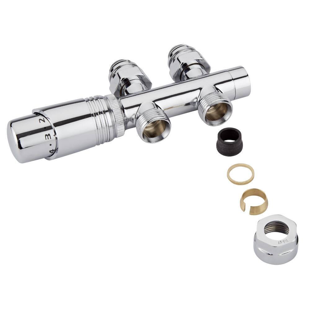 Hudson Reed Chrome Thermostatic Straight H-Block Radiator Valve