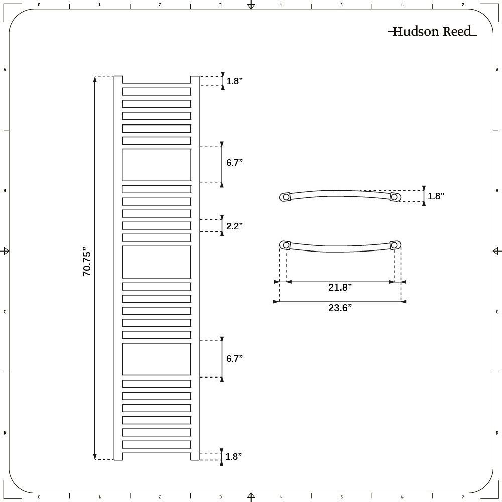 Kent - Chrome Hydronic Curved Towel Warmer - 70 7/8” x 23 5/8”