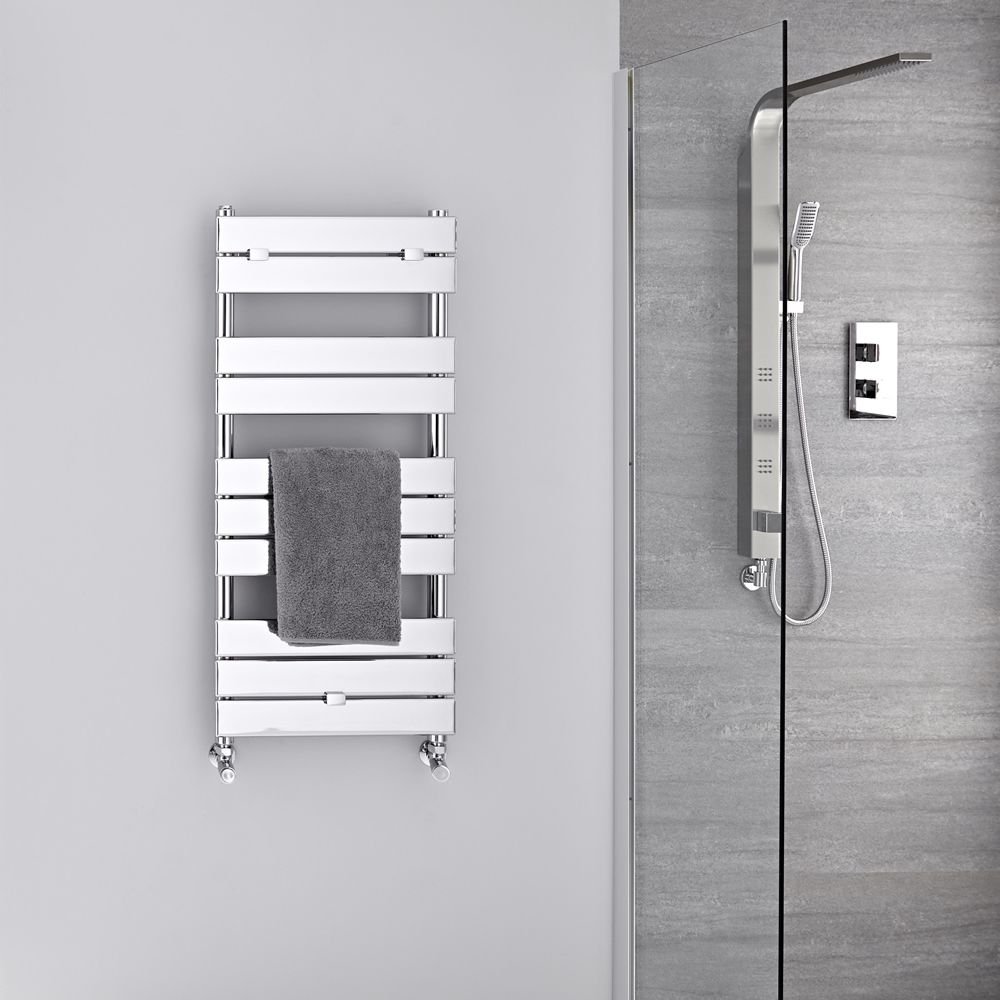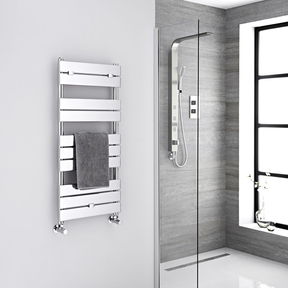 Sure to bring a designer touch to your bathroom, this hot water towel warmer features sleek flat panels in a resilient chrome finish and plenty of space for your towels. The superb heat output means your towels will be made to feel warm and dry in no time, while the premium quality steel construction gives you a long-lasting and highly durable heated towel warmer.