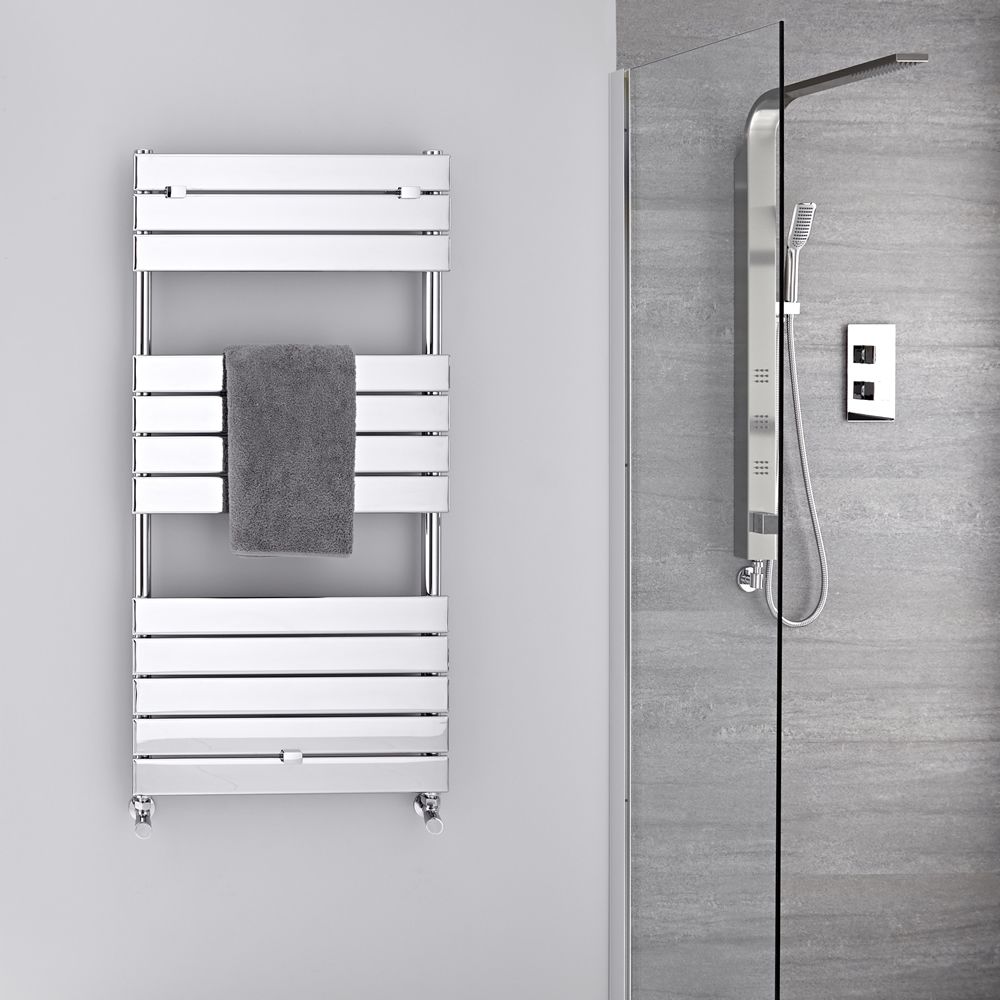 The perfect blend of form and function, this hot water towel warmer features a European inspired design and sleek flat panels in a resilient chrome finish that blends seamlessly in with any bathroom décor. It has plenty of space for your towels and the excellent heat output means they will be made to feel warm and dry in no time. What’s more, the premium quality steel construction gives you a long-lasting and highly durable towel warmer.