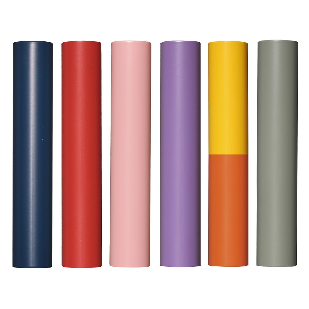 - Sample colors: Pink, Yellow, Dark Blue, Purple, Sage Green, Red, Orange