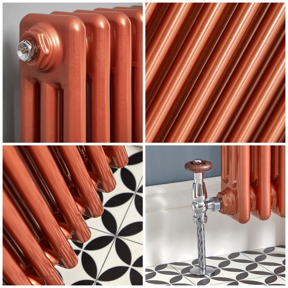 Regent - Metallic Copper Horizontal 3-Column Traditional Cast-Iron Style Radiator - All Sizes