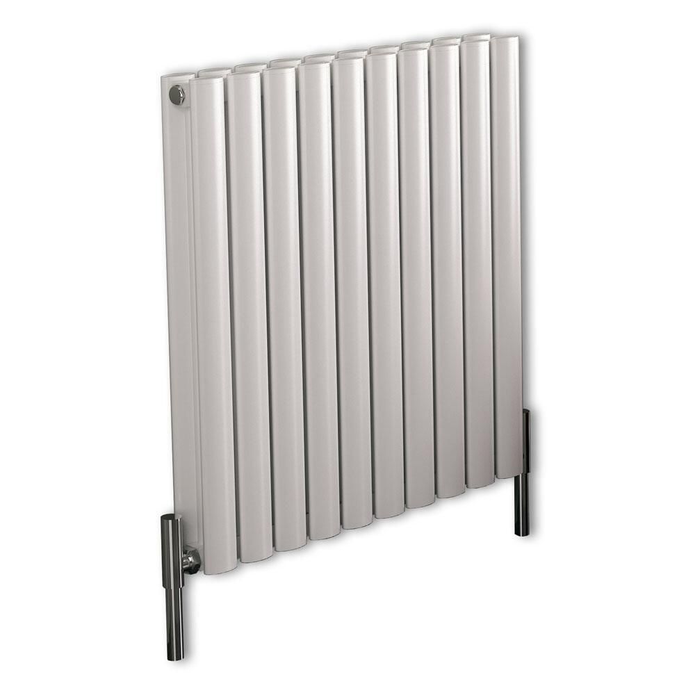 Revamp any room in your home and create a contemporary look with the Revive Air 23 ½” x 23 ¼” white aluminum double panel designer radiator, complete with valves.
