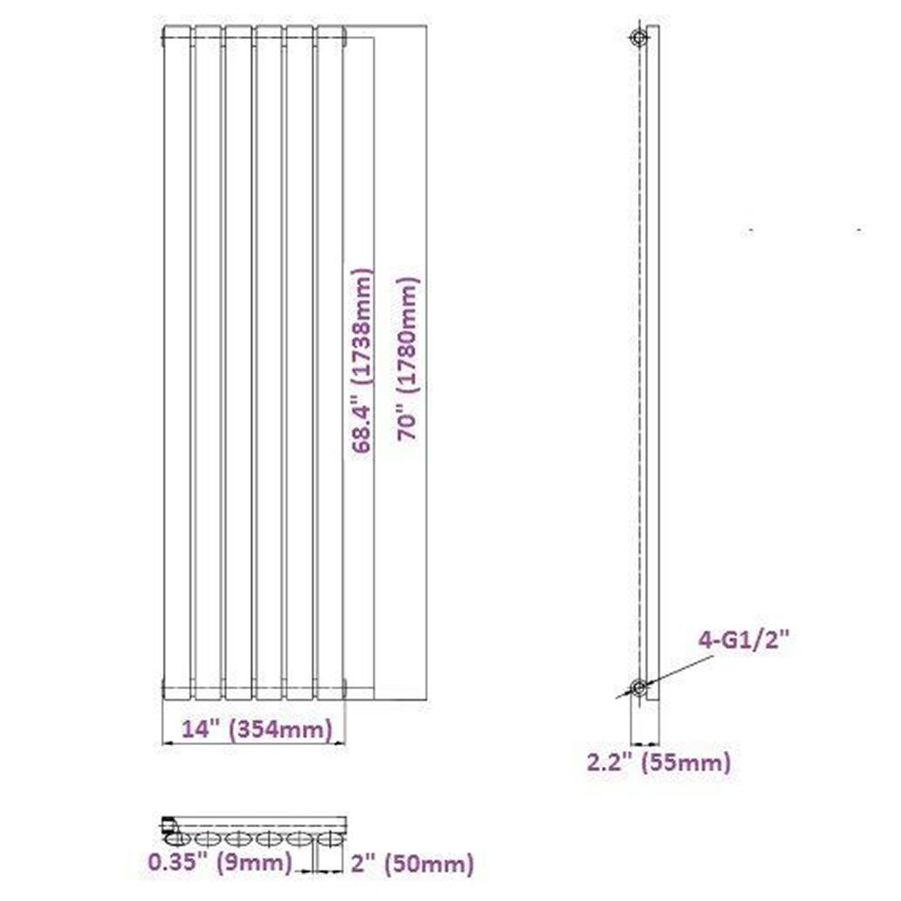 - Dimensions: (H x W x D) 70" x 14" x 4"(1780mm x 354mm x 105mm)