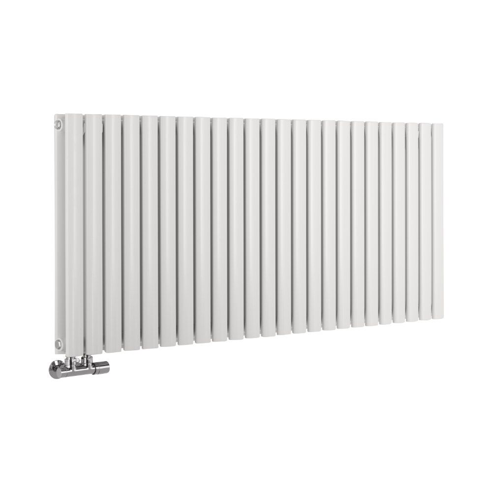 Featuring a resilient white powder coated finish and desirable oval-shaped columns, this European style hot water radiator is sure to enhance any modern interior. Perfect for revamping your bathroom, kitchen, living room or bedroom, this horizontal radiator has a superior quality steel construction for long-lasting durability and excellent performance.