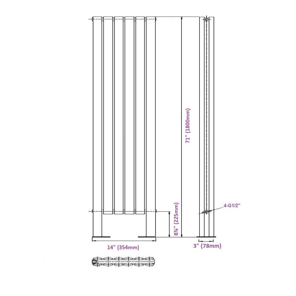 - Dimensions: (H x W x D) 71" (1800mm) x 14" (354mm) x 3" (78mm)