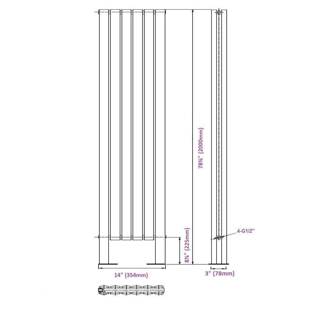 With the Revive 78 ¾” x 14” double panel vertical designer radiator you get an impressive heat output and stylish contemporary looks.