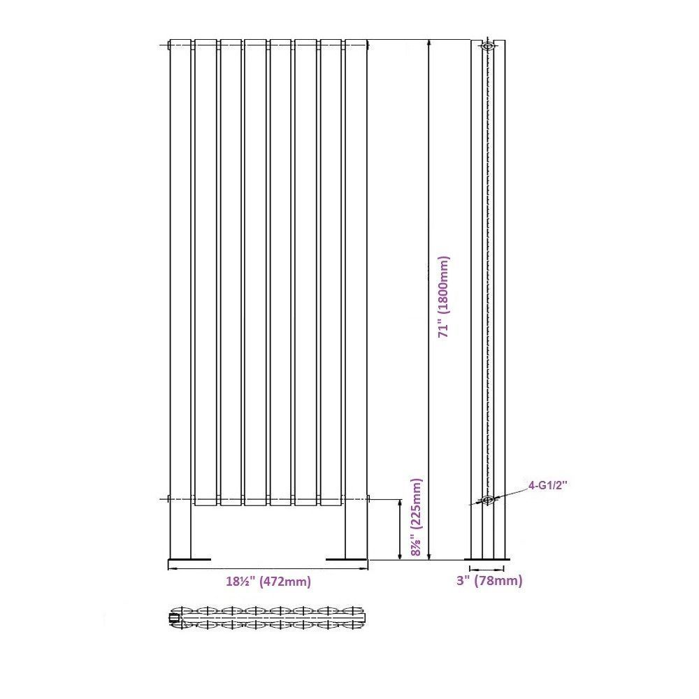 - Dimensions: (H x W x D) 71" (1800mm) x 18.5" (472mm) x 3" (78mm)