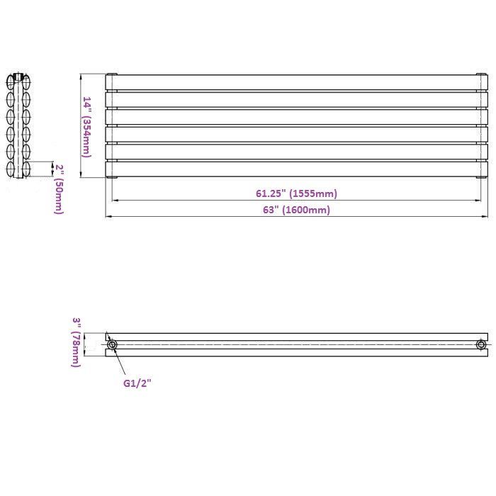 - Dimensions (H x W x D): 14" (354mm) x 63" (1600mm) x 3" (78mm)