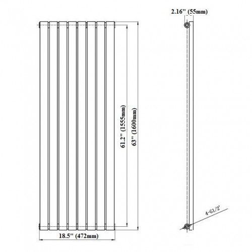 - Dimensions (H x W x D): 18.5" (472mm) x 63" (1600mm) x 2.1" (55mm)