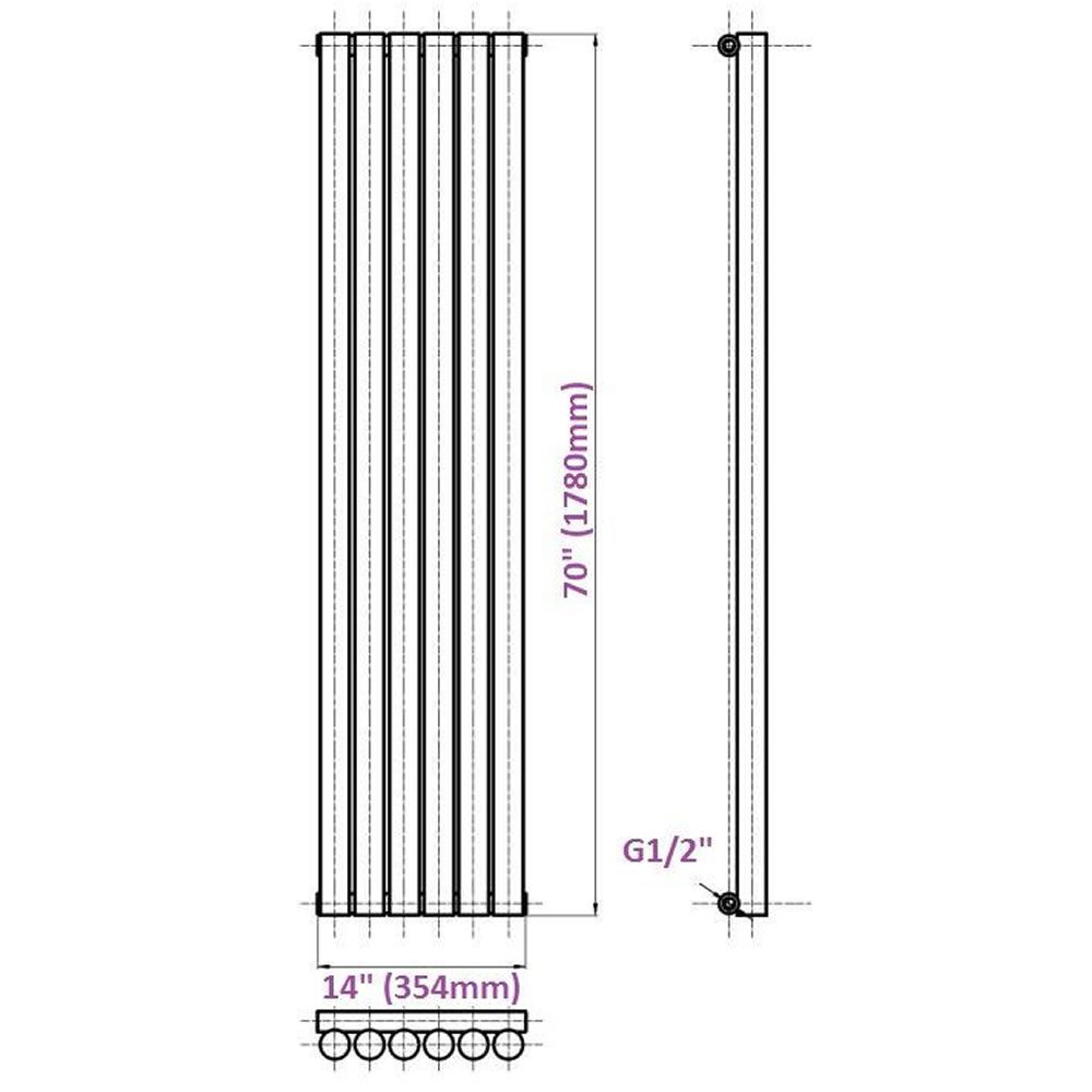 Savy - Silver Vertical Single-Panel Designer Radiator - 70" x 14"