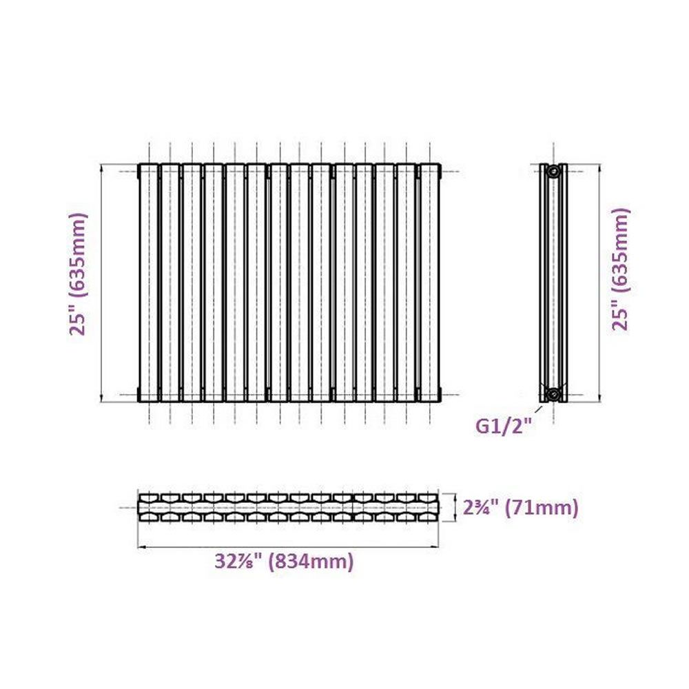 - Dimensions (H x W x D): 25" (635mm) x 32.75" (834mm) x 2.75" (71mm)