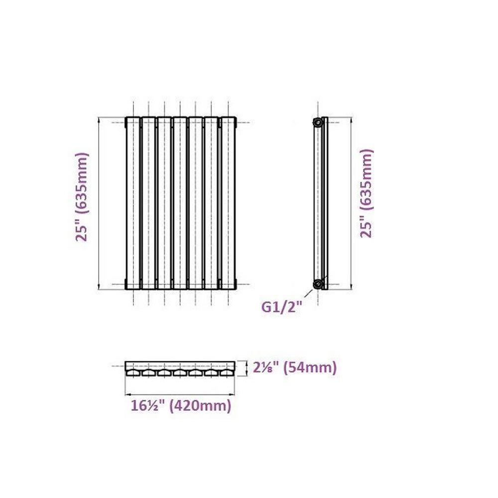 - Dimensions (H x W x D): 25" (635mm) x 16.5" (420mm) x 2.09" (54mm)