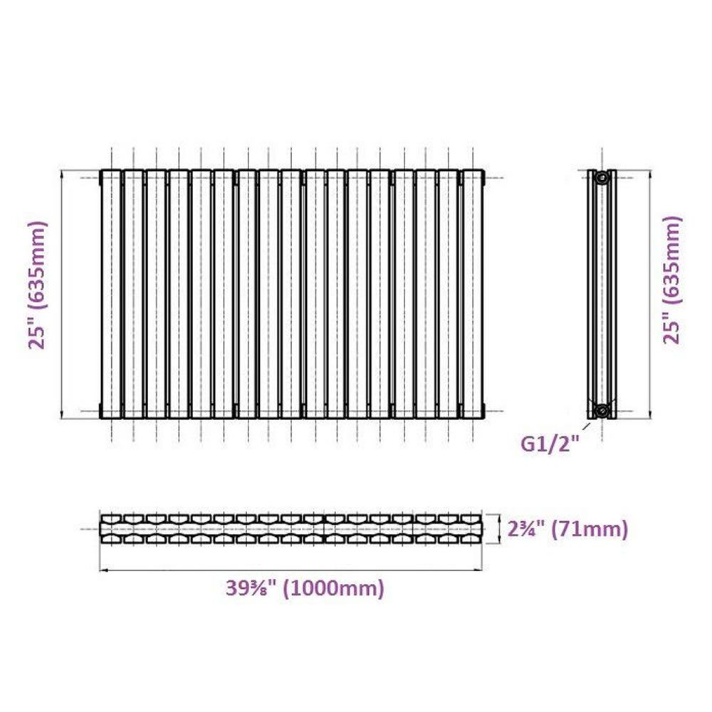 - Dimensions (H x W x D): 25" (635mm) x 39.25" (1000mm) x 2.75" (71mm)