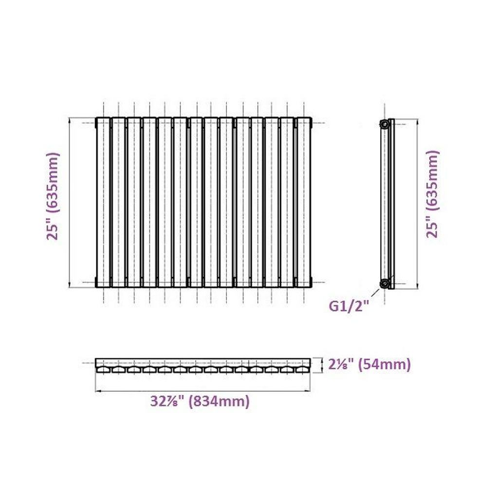 - Dimensions (H x W x D): 25" (635mm) x 32.75" (834mm) x 2" (54mm)
